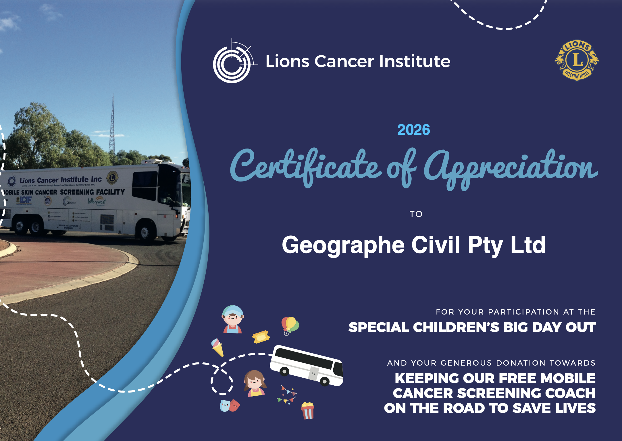 Geographe Civil was proud to put fuel into the Mobile Cancer Screening Coach at the Lions Cancer Institute